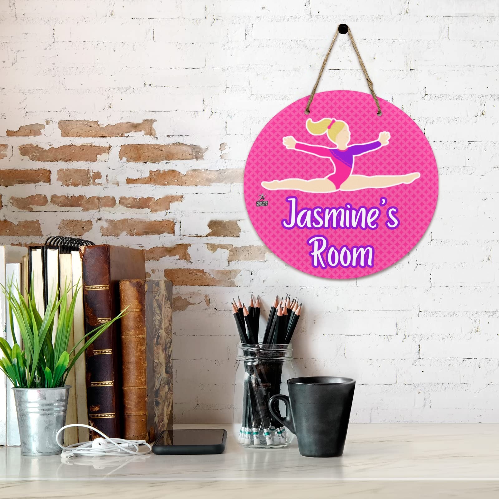 Fonyea Sports Gymnast Pink Round Wooden Door Sign 11.8''