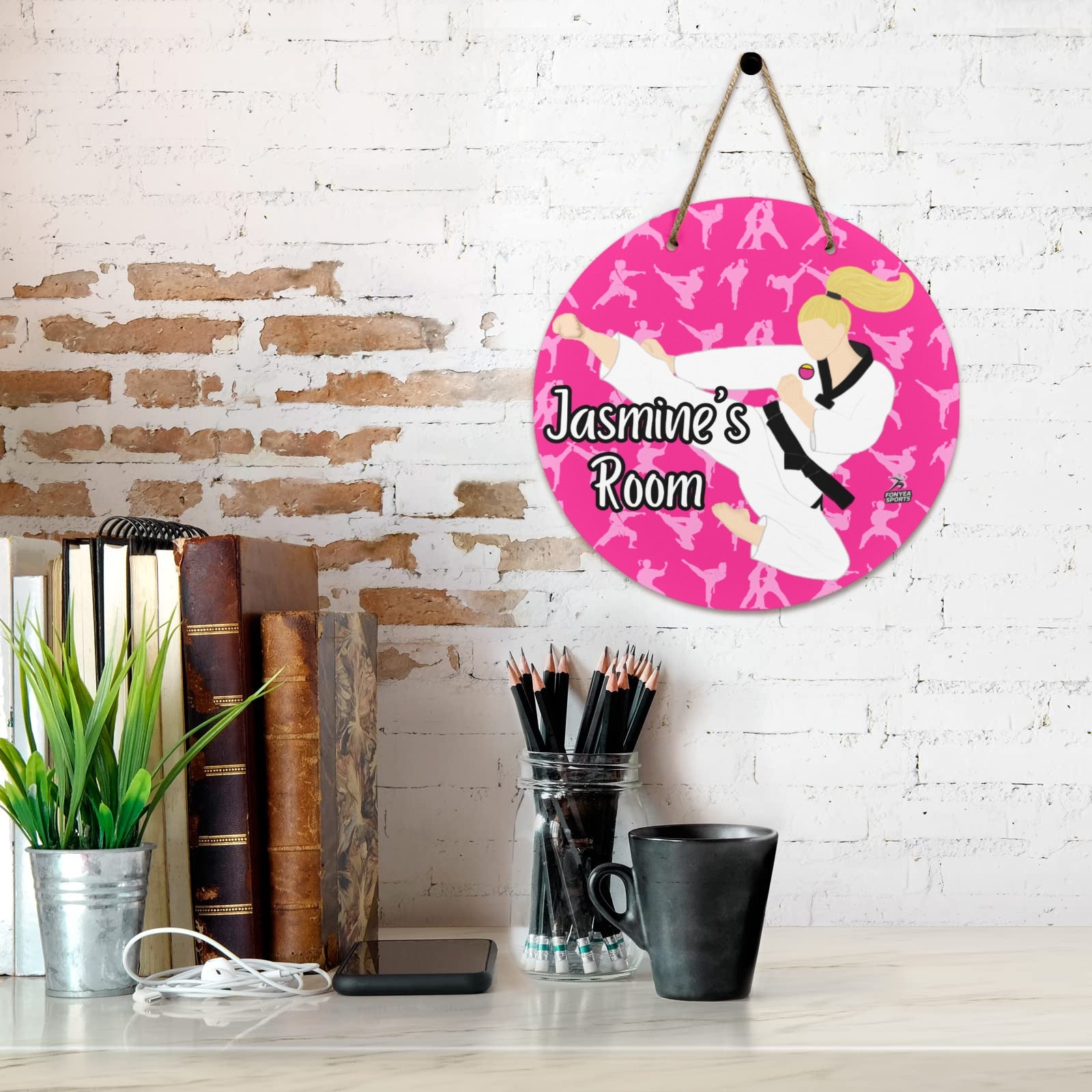 Bring fun and energy to your child’s space with the Fonyea Sports Taekwondo Martial Arts Round Wooden Door Sign. Perfect for walls or doors, this 11.8-inch sign celebrates karate, taekwondo, and judo in a playful way that kids will love. It’s a cheerful splash of motivation for every young martial arts enthusiast!