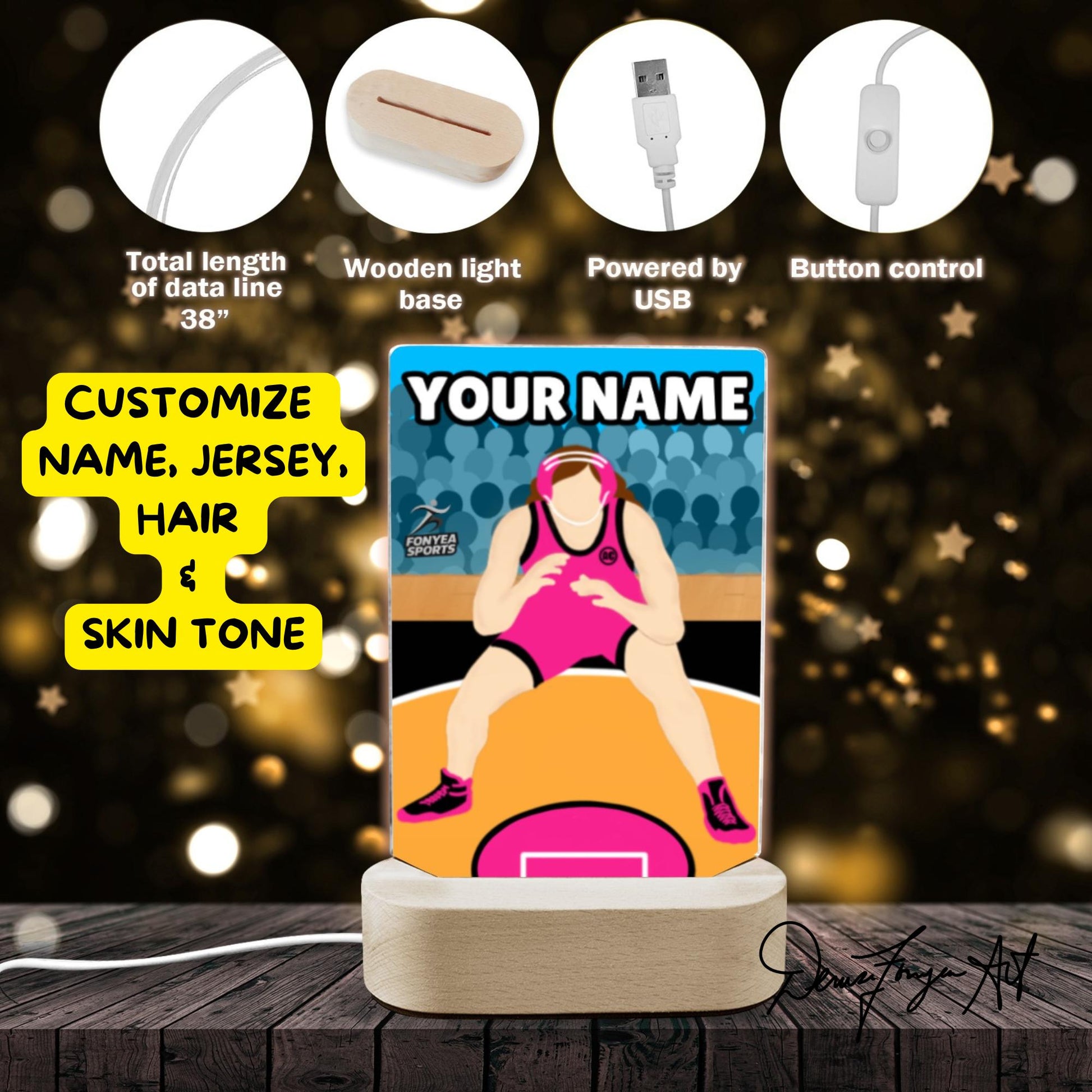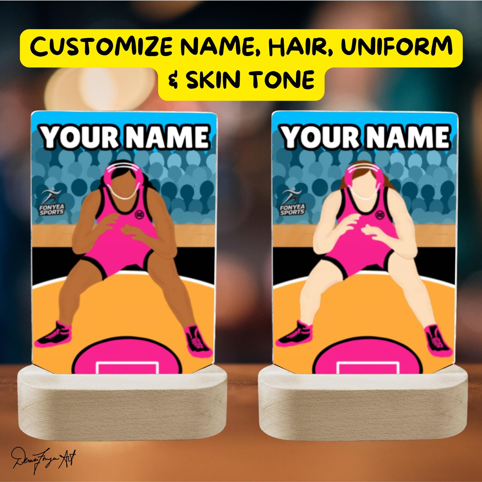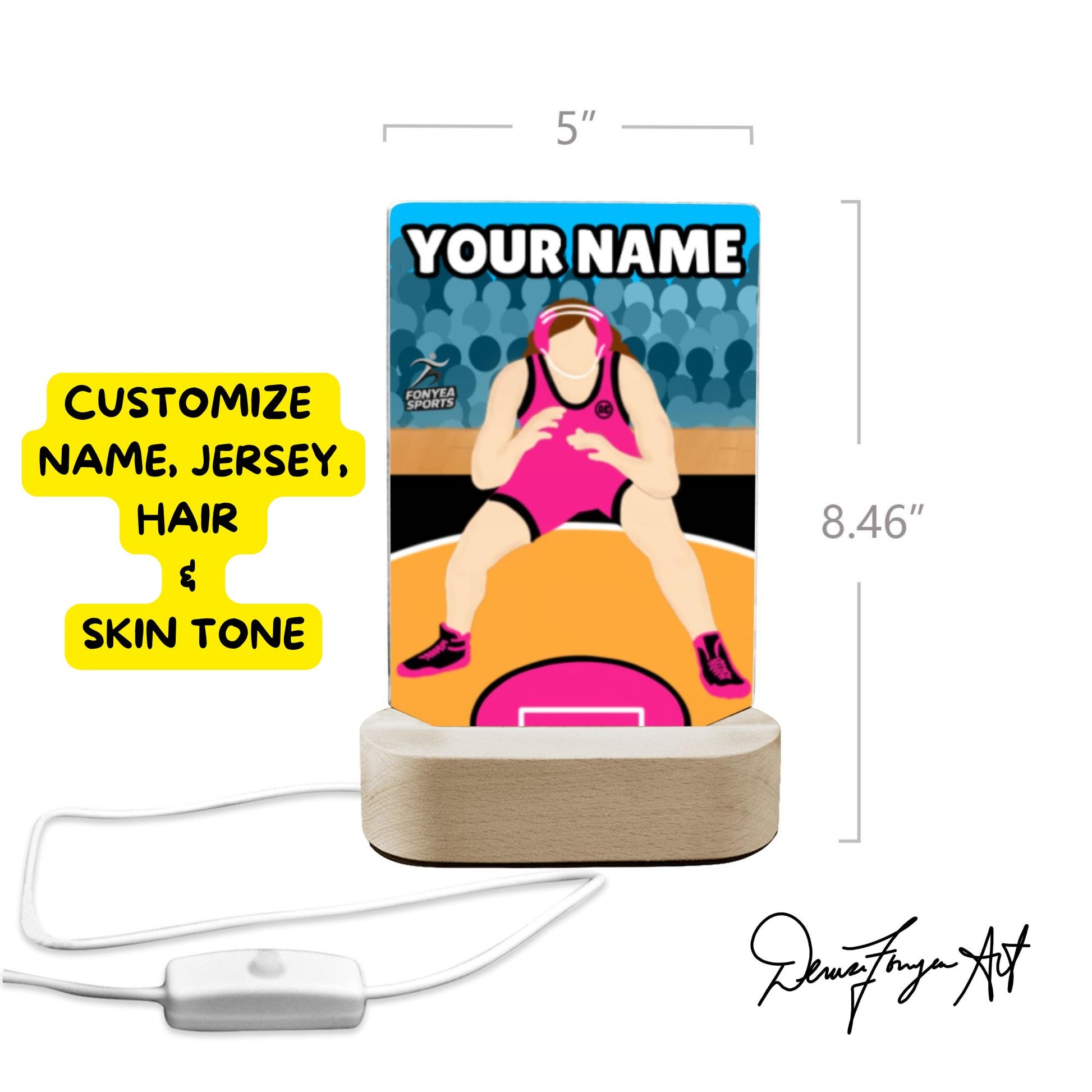 š¤¼āļø Personalized LED Girl Wrestler Lamp ā Light Up Her Power with Fonyea Sports