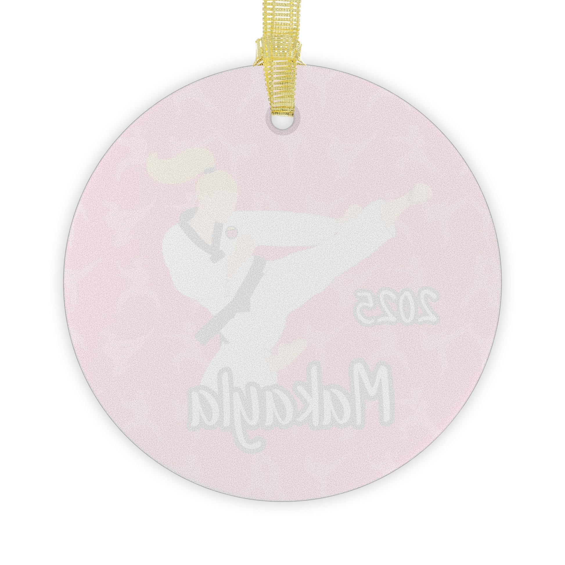 Personalized Martial Arts Karate Taekwondo Judo Pink/Black Glass Ornament, Fonyea Sports